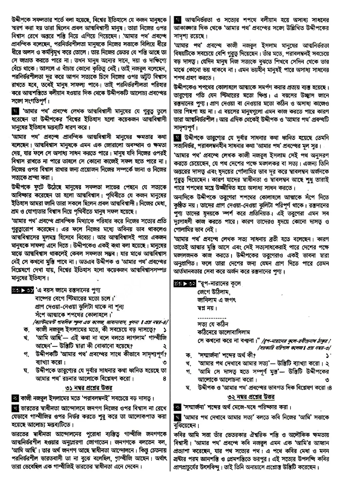 আমার পথ : সৃজনশীল প্রশ্ন ও উত্তর